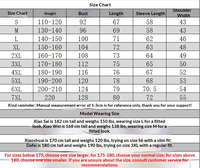 Sizes: S, M, L, XL, XXL, 3XL, 4XL, 5XL, 6XL, 7XL
