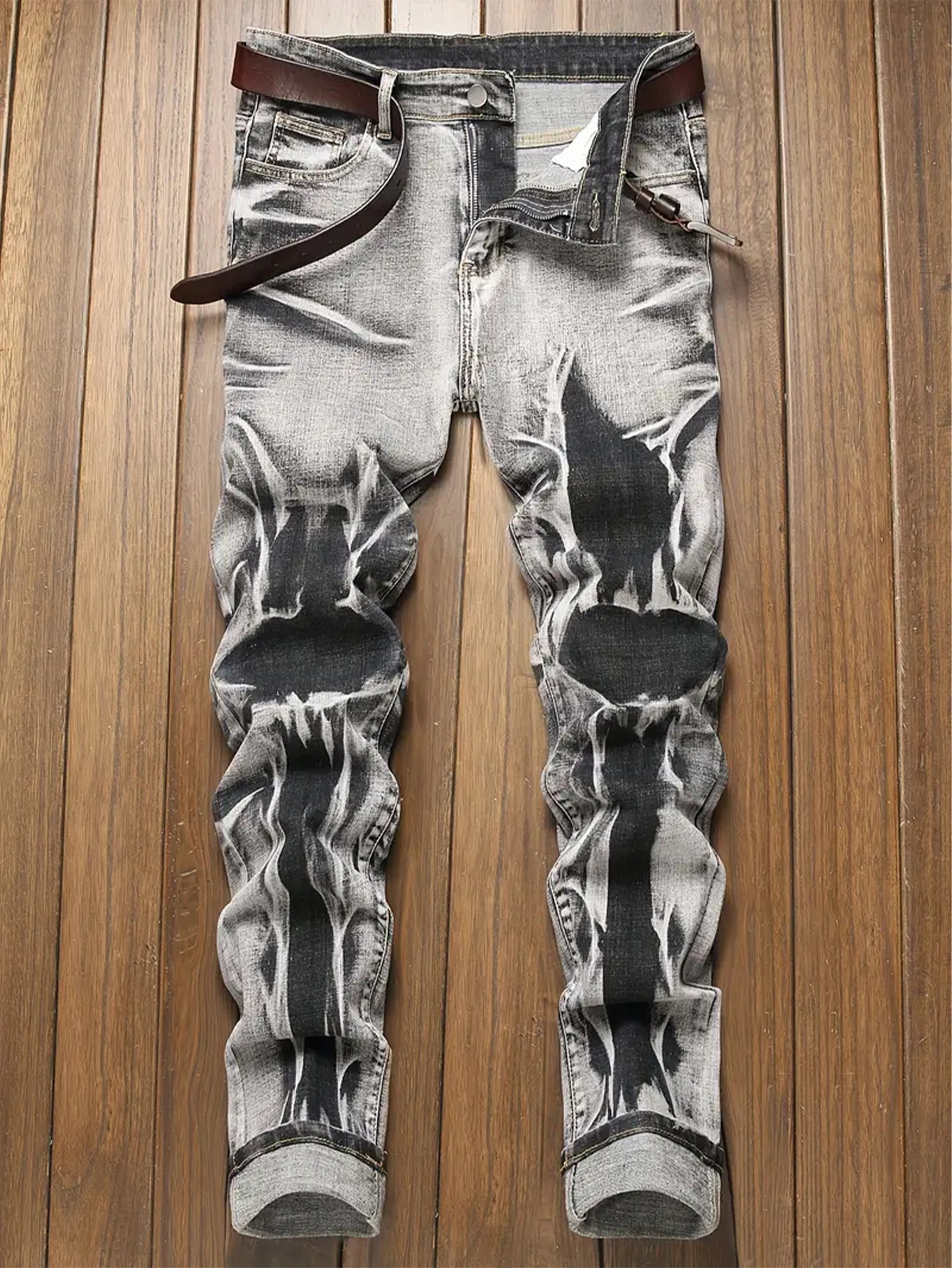 Stylish, Slim-fit Mens Trousers With An Irregular Floral Print Design